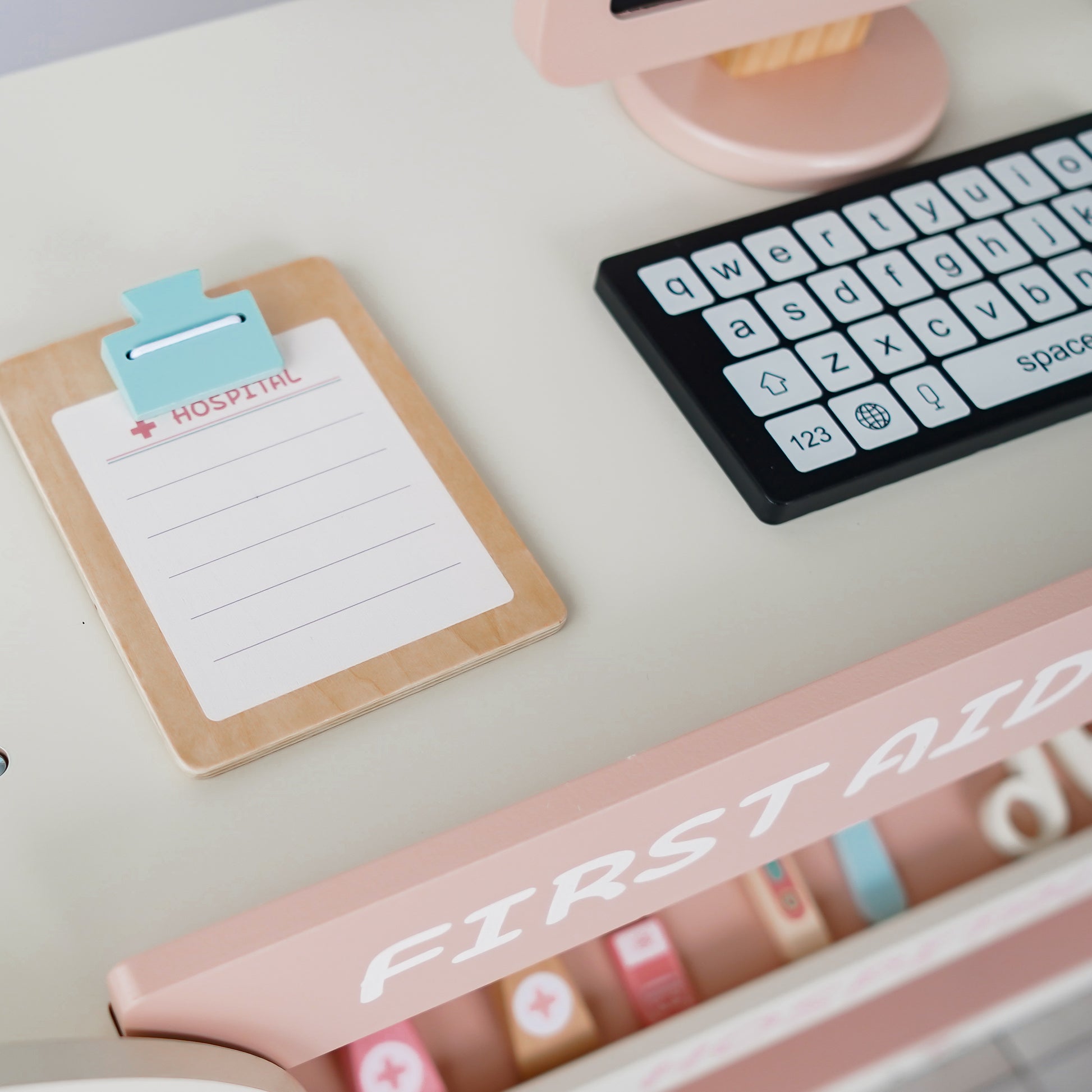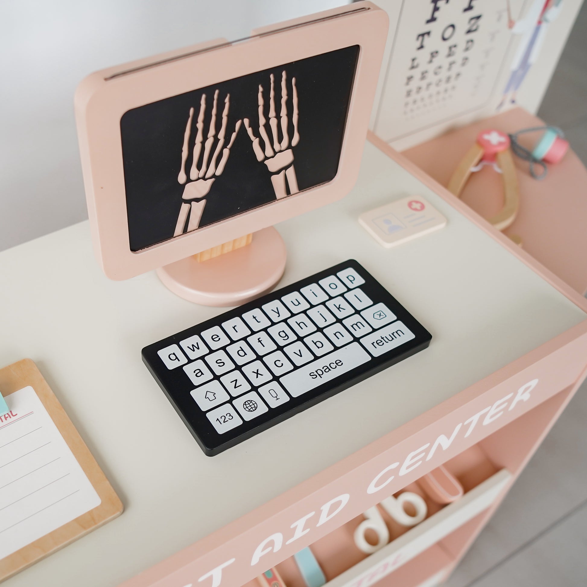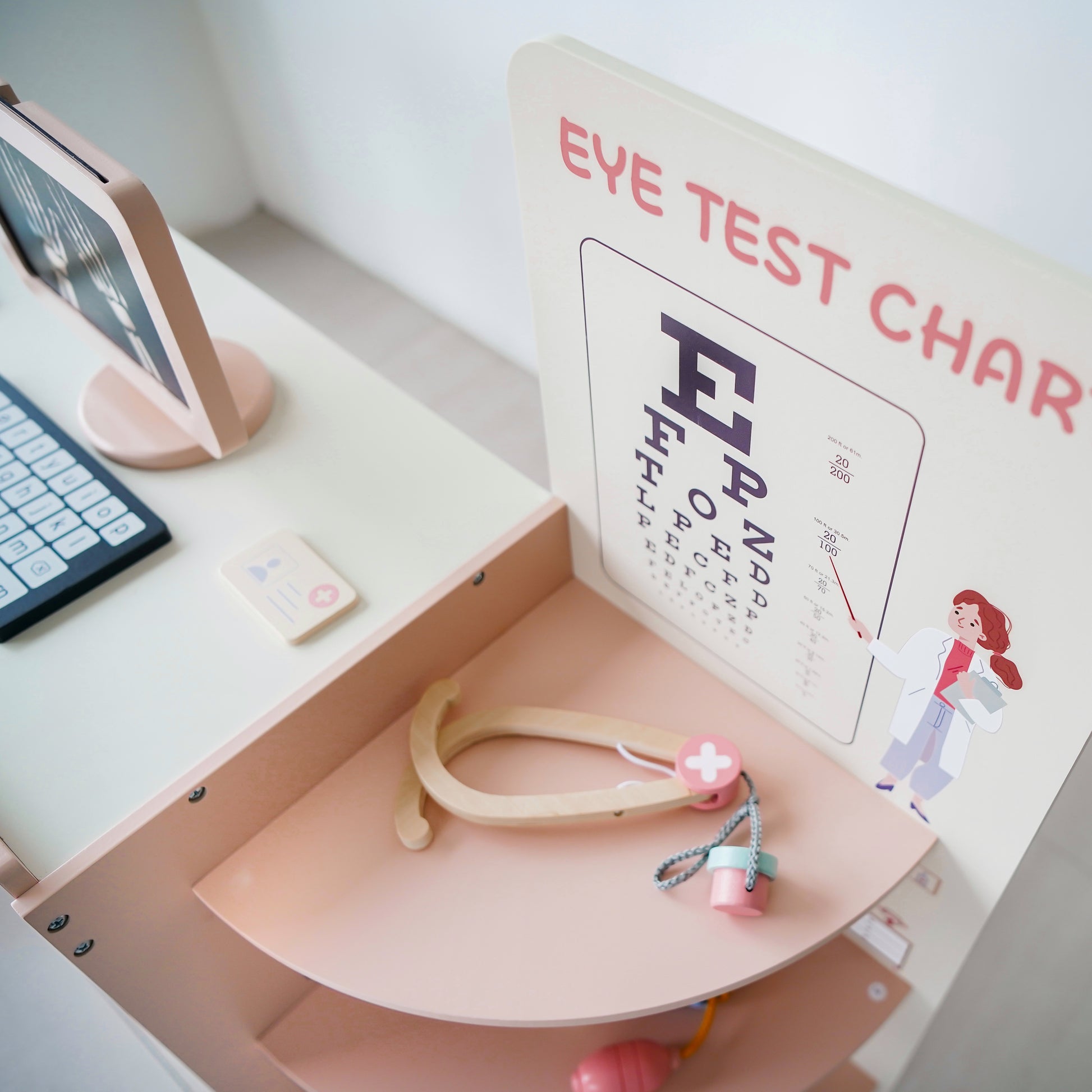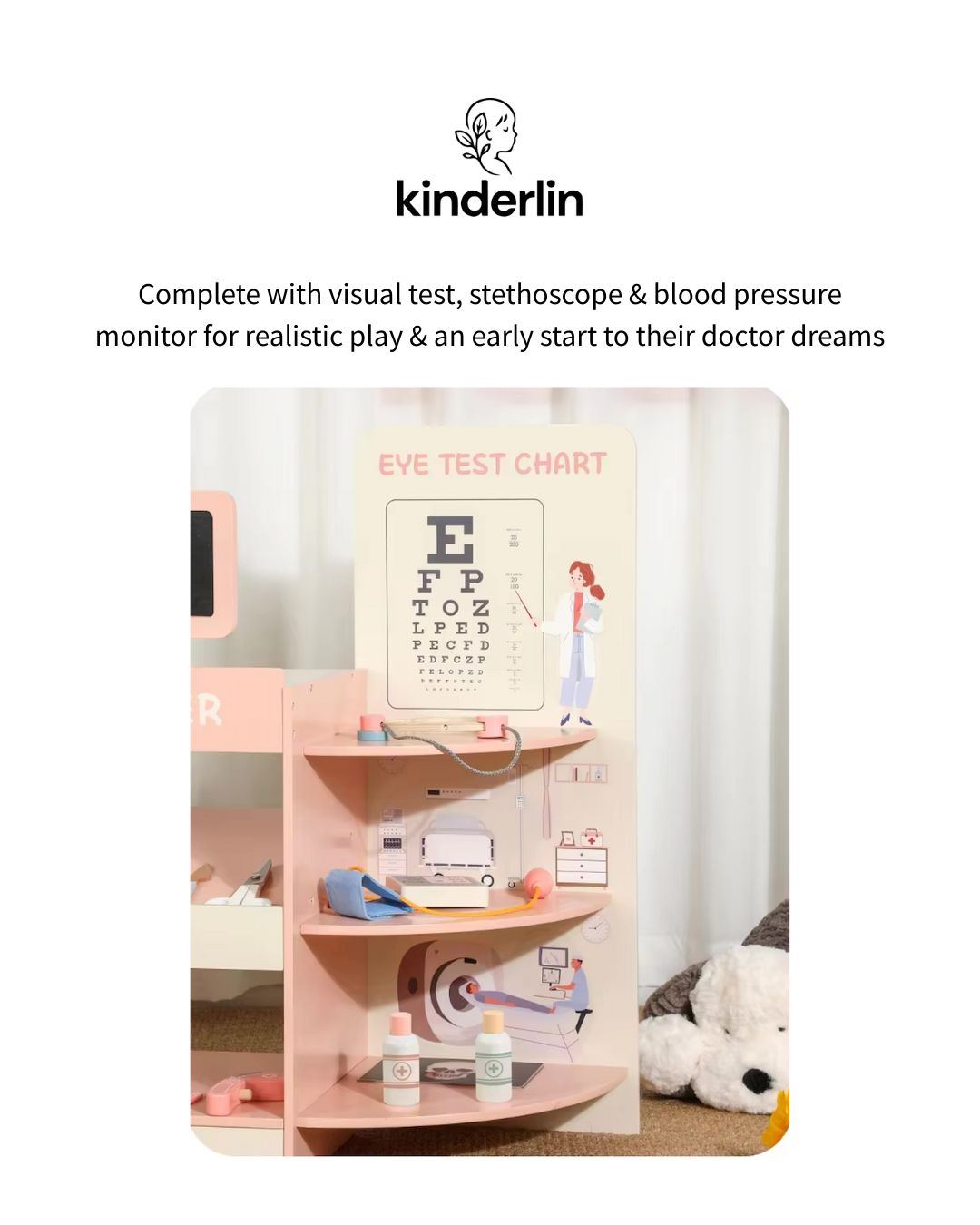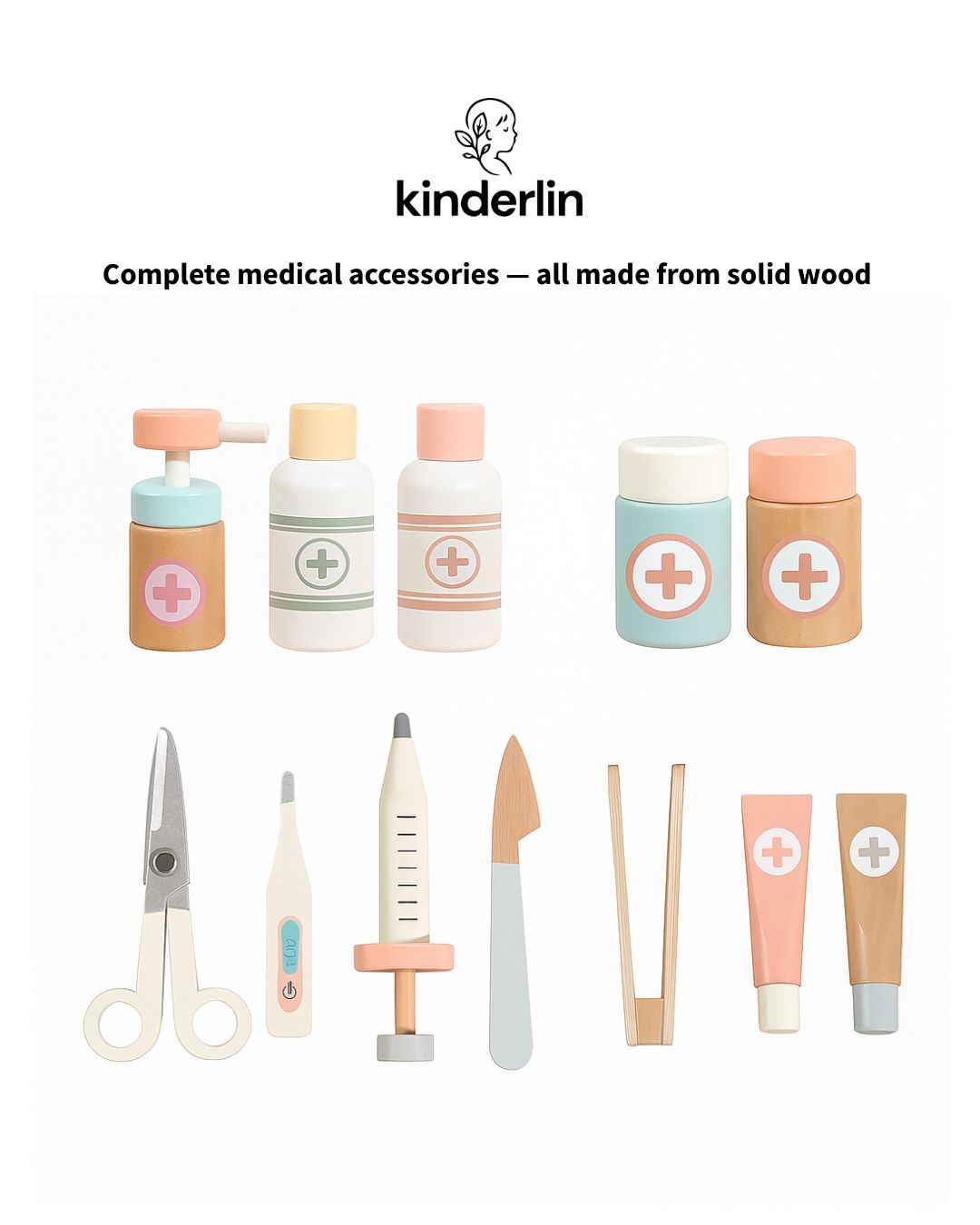 Includes medical accessories such as stethoscope, blood pressure monitor, and visual chart